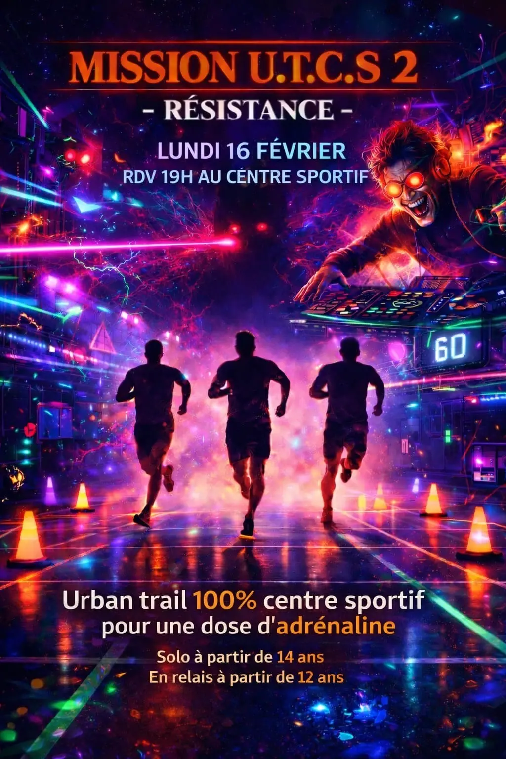 Plongez dans MISSION UTCS, le 1er Urban Trail scénarisé du Centre Sportif ! Parcours de 500 m, défis en solo ou en relais, ambiance immersive entre ombres, bruits étranges et surprises. Une expérience unique pendant vos vacances.