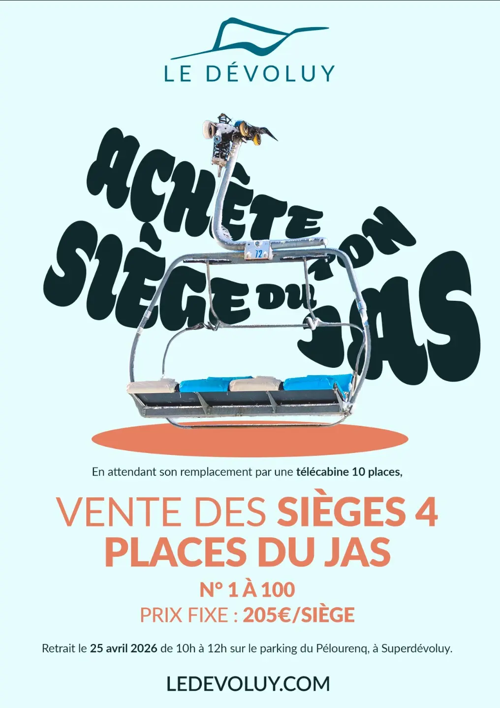 Les sièges seront à retirer le 25 avril 2026, entre 10h et 12h, sur le parking du Pelourenq, situé à l’entrée de la station de Superdévoluy.
