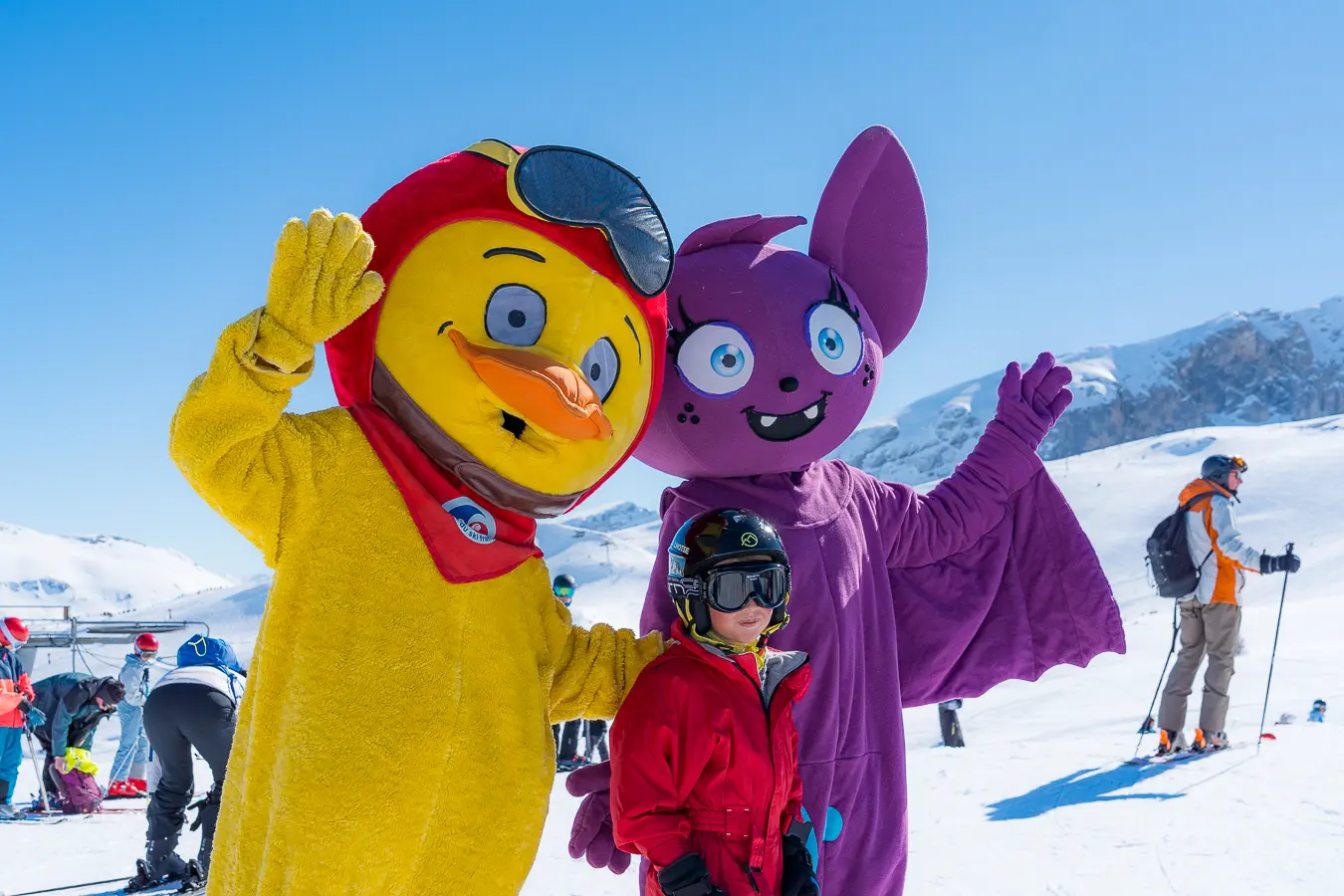 Retrouvez les mascottes D-Izzy et Piou-Piou sur le domaine skiable !