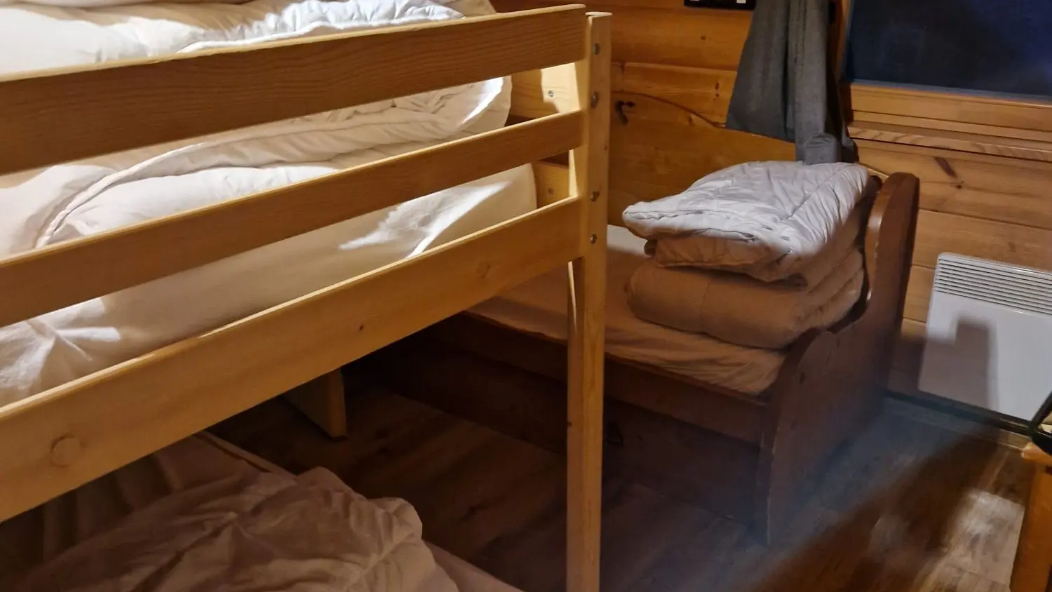 - 1 grande chambre avec lit double (160 cm) et lit gigogne transformable