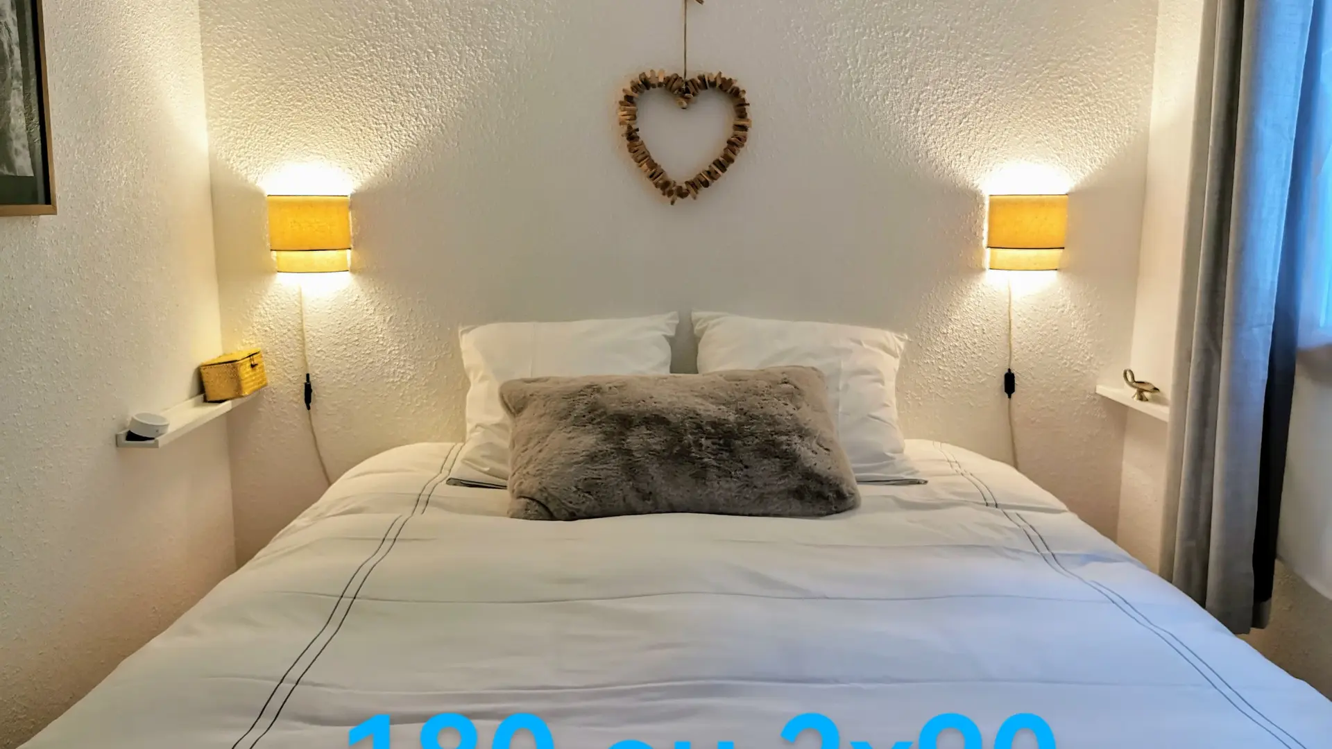 - chambre à l'étage (pièce fermée) 1 lit en 180 (ou 2x90), literie confort +