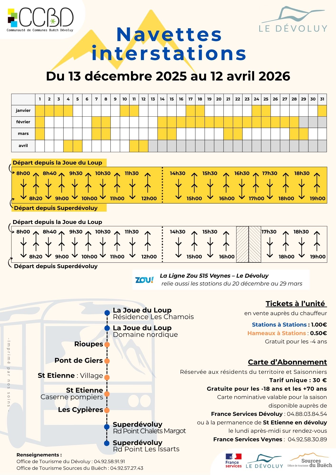 Useful: the ZOU 515 shuttle (link available at the bottom of the page) also runs between the Dévoluy resorts, but at different times. Consult this line's timetable to find a time that suits you best.